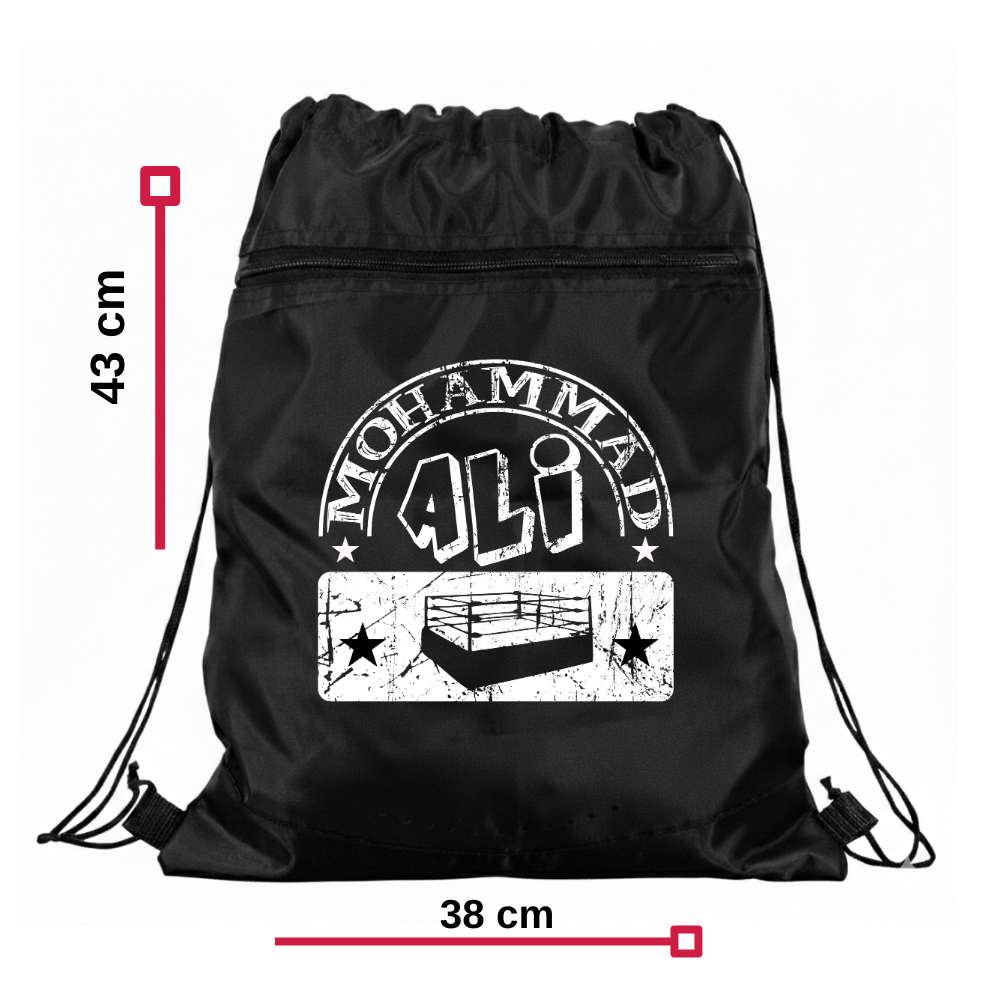 Büzgülü İpli Spor Çantası Boxing Fierce Battle Siyah