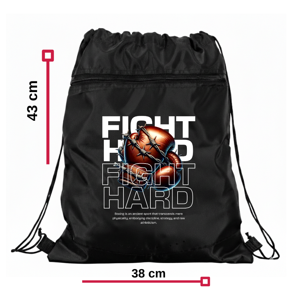 Büzgülü İpli Spor Çantası Boxing Fierce Battle Siyah